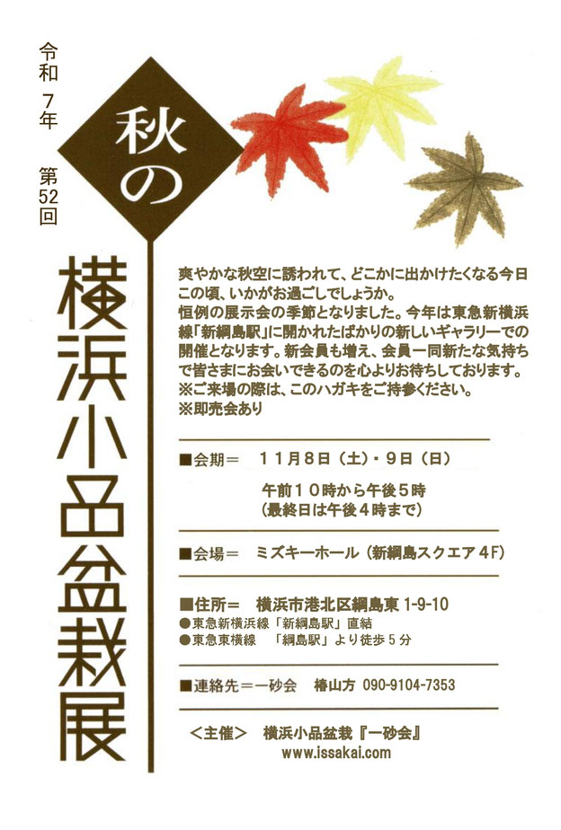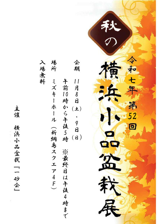 第52回秋の横浜小品盆栽展のお知らせ